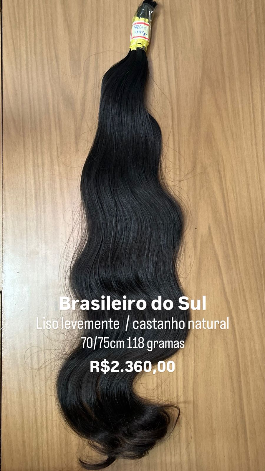 Esse é um cabelo semi-limpo ou seja contém fios menores em seu interior. Por se tratar de um cabelo natural, podem ocorrer variações suaves de cor, podendo conter fios brancos ou avermelhados (característicos de sua origem).